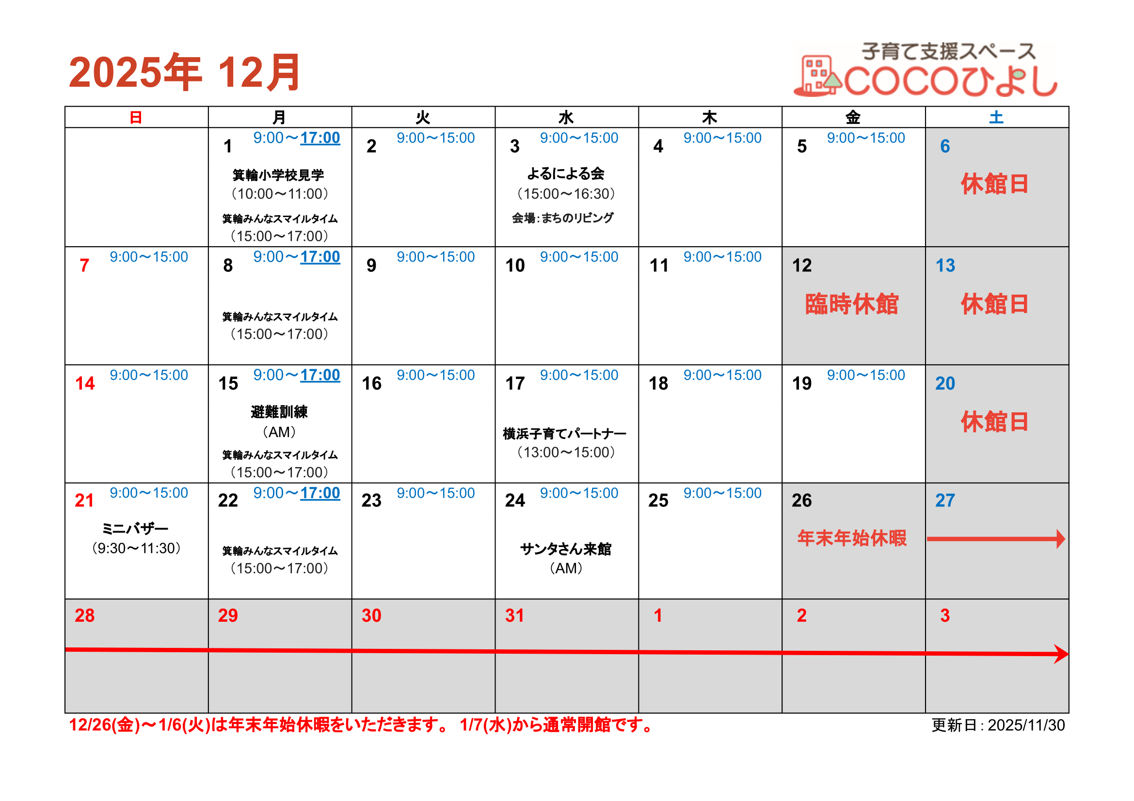★箕輪みんなスマイルタイム(15~17時開館)12/1(月)・12/8(月)・12/15(月)・12/22(月)