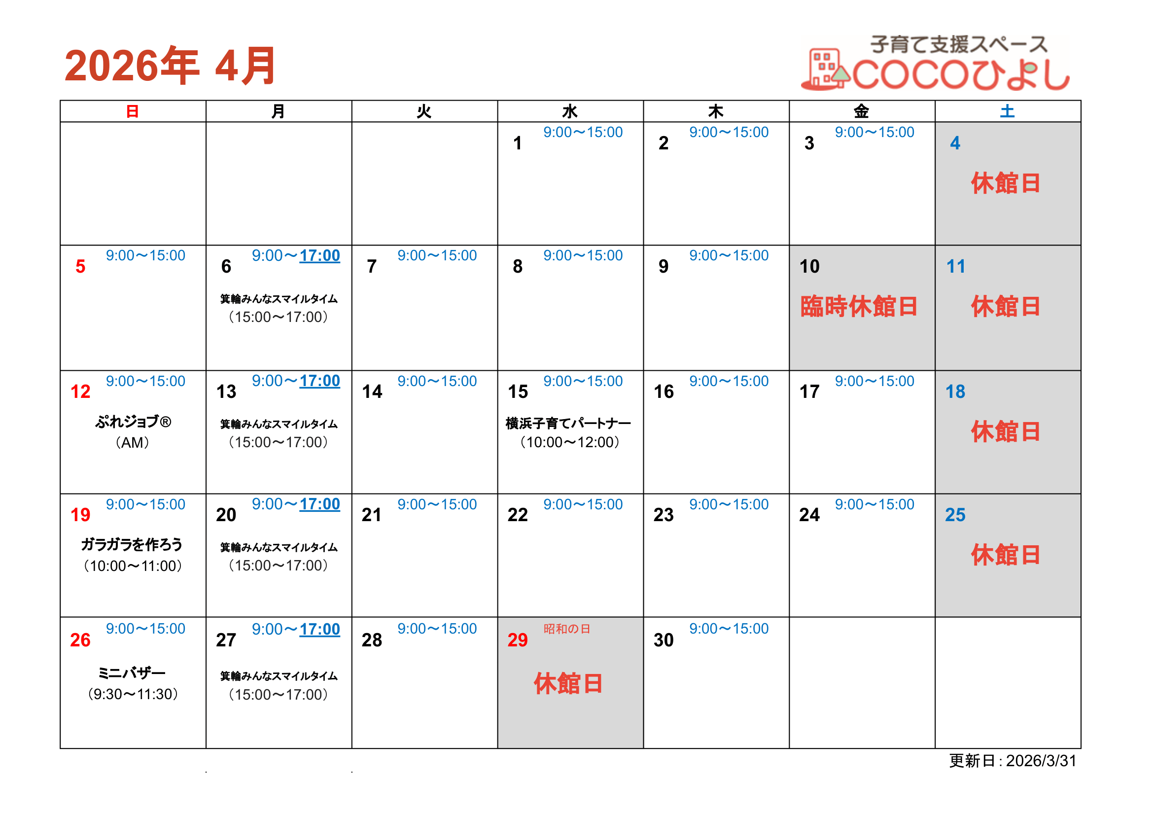 ★箕輪みんなスマイルタイム(15~17時開館)4/6(月)・4/13(月)・4/20(月・4/27(月)