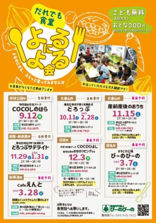 よるによる会は、綱島・日吉・大倉山・岸根・菊名エリアにある地域拠点で月に1~2回ほどひらいている「だれでも食堂」です。